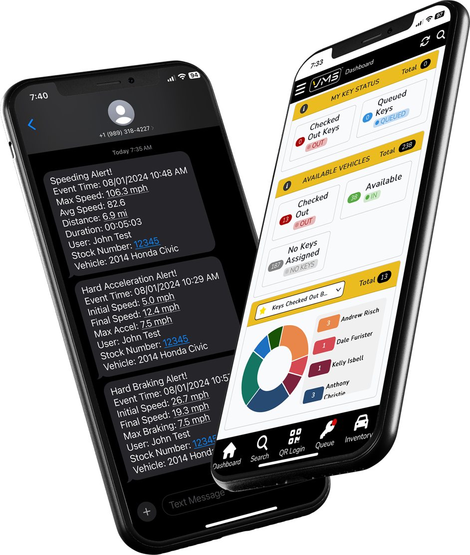 Take your awareness to the next level beyond the keys to the vehicles with VMS IQ™ reporting and alerts! We already know that only knowing things when you are looking for them is not enough so we have developed advanced IQ virtual reporting and notifications that will let you know what you need to know in real-time!