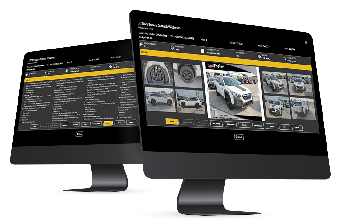 In order to get the most out of your experience with VMS™ we wanted to provide you with all the information about your vehicles no different than if you were on your website. We import all the information you need from your DMS or any system you are using coupled with our Chrome Data integration so that you can perform a virtual walk around with your customers or just simply know everything.