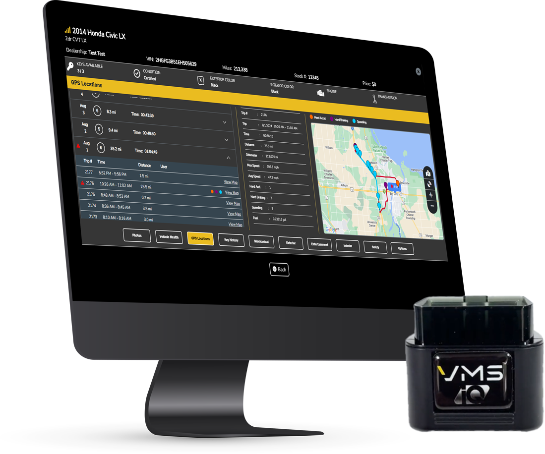 - If you have VMS IQ™, then you will also get the vehicle diagnostic data to relate to your inventory as well as the trip data to relate to your customers.